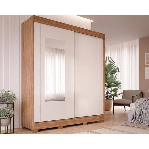 Guarda Roupa Casal 2 Portas de Correr e 3 Gavetas c/ Espelho Ilheus Cinamomo/Off White - Panan