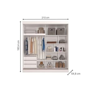 Dimensões(Cm): Comprimento(Profundidade): 55cm x Largura: 183cm x Altura: 210cm