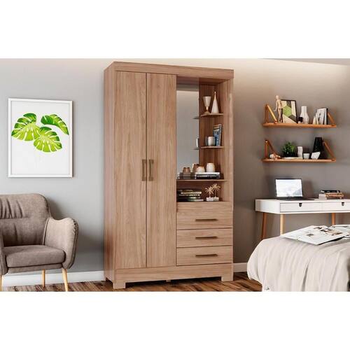Guarda Roupa Solteiro 2 Portas e 3 Gavetas c/ Espelho e Pés Briz B64 Jequitibá Brilho - Henn