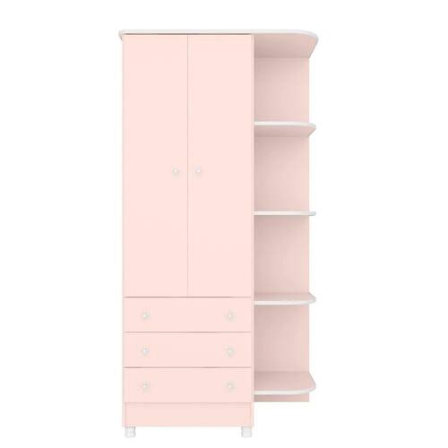 Descrição do Produto: Guarda Roupa Infantil 2 Portas com Cantoneira Doce Sonho QMovi:- Confeccionado com chapas de 15mm;- Acabamento em pintura UV brilho e verniz anti-risco;- Cantoneira lateral com 4 prateleiras;- 2 Portas e 3 Gavetas;- 3 prateleiras internas;- Cabideiro em madeira revestido em PVC;- No processo de montagem dos produtos usasse girofix e parafusos;- Corrediças plásticas. Veja as Especificções Abaixo:- Marca: Qmovi;- Modelo: Guarda roupas Dimensções:- Altura: 185 cm;- Largura: 86,5 cm;- Profundidade: 47 cm;- Garantia de 03 meses - Cor: Rosa acetinadoAtenção! Confira as dimensões deste produto e certifique-se de que passará normalmente por supostos elevadores, portas, escadas e/ou corredores de sua moradia; As imagens são ilustrativas, eletrodomésticos e demais objetos que compõem o cenário, não fazem parte do anúncio; Sobre a tonalidade das cores, poderá ocorrer alterações conforme a configuração do seu monitor. Orientamos que a montagem e instalações do produto seja realizado por um técnico de sua confiança, após a sua entrega. Garantia de 3 meses pelo fornecedor.