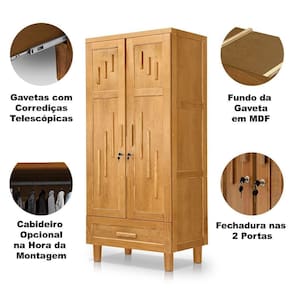 Características Armário de Roupas 100% Madeira 2 Portas 1 Gaveta: - Estrutura em madeira maciça; - 2 portas com fechaduras; - Fechaduras nas 2 portas; - 1 gaveta com corrediça telescópica; - Puxadores em MDF; - 4 nichos;