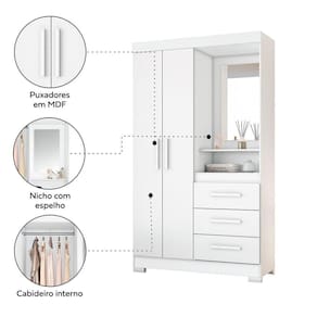 Ideal para os quartos com pouca área útil, o Guarda-Roupa NT 5170 - MoveisAqui, é essencial para o seu quarto, por ser compacto se encaixa perfeitamente nesse ambiente. Possui um espelho, para dar aquela conferida no look, além de duas portas e três gavetas que contribuirão para a orgazição.