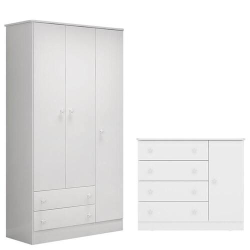 Guarda Roupa 2617 e Cômoda Infantil 2561 Doce Sonho Branco Brilho – Qmovi