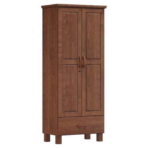 Guarda-roupa projetado para quem busca aliar sofisticação e praticidade no seu espaço. Fabricado em madeira maciça, oferece durabilidade e resistência para o seu dia a dia. Com 81,2cm de largura o modelo conta com amplo espaço interno, permitindo organização eficiente de suas roupas e acessórios. Seu design se destaca pelos pés e puxadores em madeira, conferindo um toque de leveza ao móvel, e seu acabamento com pintura acetinada em verniz PU e UV que realça a beleza natural da madeira. Conta com 01 gaveta equipada com corrediças metálicas e 02 portas com dobradiças metálicas, facilitando o movimento de abrir e fechar. Com 03 prateleiras internas, sendo 02 removíveis e 01 cabideiro em alumínio, o guarda-roupa oferece organização flexível e suficiente para todos os seus itens. Este móvel chegará em sua casa separado em 01 volume.