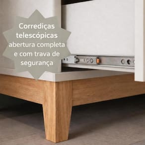 As 3 gavetas com corrediças telescópicas garantem abertura suave e segura, enquanto o acabamento moderno com puxadores tipo cava traz um visual clean e sofisticado.