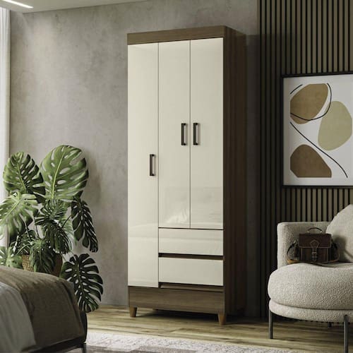 Este é um guarda-roupa de ótimo custo benefício da Santos Andirá, que atende as mais diversas necessidades de uso. Conta com amplo cabideiro em alumínio, que permite pendurar as roupas, com bastante organização. Conta também com 02 amplas gavetas externas que deslizam sobre corrediças metálicas com suavidade, garantindo qualidade ao produto. Puxadores em ABS, deixando o produto ainda mais moderno, com um design limpo e cheio de charme. Suas prateleiras tem espaço para guardar todas as roupas dobradas, caixas, sapatos, decoração, etc. O acabamento é em verniz brilhante, tudo feito dentro dos padrões de preservação do meio ambiente, de forma sustentável. Possui pés em PVC, permitindo que o guarda-roupa fique elevado do chão, facilitando a limpeza embaixo dele. Acabamento da Prateleira: Pintura Escala de Brilho da Prateleira: Semi-Brilho Possui Cabideiros: Sim Acabamento da Gaveta: Pintura Escala de Brilho da Gaveta: Semi-Brilho Possui Organizador de Gaveta: Não Acabamento da Porta: Pintura Escala de Brilho da Porta: Semi-Brilho Material do Puxador da Porta: PVC Acabamento dos Pés: Pintura Altura dos Pés: 5 cm Altura Máxima dos Pés: 5.0000 Ambiente Principal: Quarto codigo_ean: 7909903613443 Complexidade da Montagem: Baixa: pode ser montado por uma pessoa sozinha Cor: Jequitibá/Off Cor do Produto: Jequitibá/Off Cor Flex: Não Cor Interna: Jequitibá Escala de Brilho: Semi-Brilho Gaveta com Chave: Não Itens Inclusos: Guarda roupa, pés, acessórios e manual de montagem Linha ou Coleção: Fit Manual de Especificação Técnica: https://product-hub-prd.madeiramadeira.com.br/898232/documents/249cbef7-30fb-4c5e-8158-fd27fa57bc781847279guardaroupa32.pdf Manual de Montagem e Instalação: https://product-hub-prd.madeiramadeira.com.br/898232/documents/ee56a366-ce44-4832-b701-ea5819568278184727194601901grfit32.pdf Material da Gaveta: MDP Material da Porta: MDP Material da Prateleira: MDP Material dos Pés: PVC Material Principal: MDP modular: Não Montagem Flex: Não Necessita Montagem: Sim Origem do Produto: Nacional Peso: 38 kg Peso Máximo por Gaveta: 3 kg Peso Máximo por Prateleira: 3 kg Possui Calceiros: 01 Possui Espaço para Vestidos Longos: Não Possui Espelho: Não Possui Espelho Interno: Não Possui Ganchos: Não Possui iluminação: Não Possui Nichos: Não Possui Painel de TV: Não Possui Pés: 04 Possui Portas: Sim Possui Prateleiras: Sim Possui Sapateira: Não Produto Montado: Sim Quantidade de Gavetas: 02 Gavetas Quantidade de Prateleiras: 02 Prateleiras Recomendações de Uso, Manutenção e Limpeza: Não limpar com álcool ou qualquer outro produto químico, utilize somente pano seco ou levemente umedecido. Sapatas Niveladoras: Não Sistema de Montagem: Parafusos e cavilhas Tipo de Corrediça da Gaveta: Metálica Simples Tipo de Dobradiça/Corrediça da Porta: Metálica Tipo de Gaveta: Externa Tipo de Guarda-Roupa: Casal Tipo de Puxador da Gaveta: Não Possui Tipo de Puxador da Porta: Externo