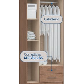 Com design compacto, o Guarda-Roupa Moscou alia praticidade e estilo. Equipado com corrediças metálicas, garante funcionamento suave e durabilidade no uso diário. Seus puxadores na cor bronze adicionam um toque elegante ao móvel. O interior conta com ampla divisão, proporcionando organização eficiente para atender às necessidades do dia a dia. Acabamento da Prateleira: Pintura UV Escala de Brilho da Prateleira: Semi-Fosco Possui Cabideiros: Sim Acabamento da Gaveta: Pintura Texturizada UV Escala de Brilho da Gaveta: Semi-Fosco Material do Puxador da Gaveta: Plástico Possui Organizador de Gaveta: Não Acabamento da Porta: Pintura Texturizada UV Escala de Brilho da Porta: Semi-Fosco Material do Puxador da Porta: Plástico Ambiente Principal: Quarto codigo_ean: 7900288235282 Complexidade da Montagem: Média: pode ser montado por mais de uma pessoa e/ou necessite de maior conhecimento para montagem Cor: Macadâmia Cor da Porta: Marrom Cor do Produto: Macadâmia Cor Interna: Boucle Escala de Brilho: Semi-Fosco Espessura da Estrutura (mm): 12 mm Espessura das Portas (mm): 15 mm Espessura das Prateleiras (mm): 12 mm Espessura do Fundo (mm): 3 mm Espessura do Fundo das Gavetas (mm): 3 mm Gaveta com Chave: Não Itens Inclusos: 1 Guarda-Roupa, Manual de Montagem e Kit Ferragens Linha ou Coleção: Moscou Manual de Montagem e Instalação: https://product-hub-prd.madeiramadeira.com.br/643561092/documents/138ab553-e15c-4e9b-91eb-b0d23ef0cf358edf1af130ffd6b41757699081.pdf Marca: Móveis Castro Material da Gaveta: MDP Material da Porta: MDP Material da Prateleira: MDP Material Principal: MDP modular: Não Necessita Montagem: Sim Origem do Produto: Nacional Peso: 49,8 kg Peso Máximo por Gaveta: 3 kg Peso Máximo por Prateleira: 8 kg Porta Janelada: Não Possui Calceiros: Não Possui Espelho: Não Possui Pés: Não Possui Portas: Sim Possui Prateleiras: Sim Produto Montado: Sim Quantidade de Cabideiros: 01 Cabideiro Quantidade de Gavetas: 02 Gavetas Quantidade de Prateleiras: 03 Prateleiras Recomendações de Uso, Manutenção e Limpeza: Limpar com pano levemente umedecido Sistema de Montagem: Parafusos e Cavilhas Tipo de Corrediça da Gaveta: Metálica Simples Tipo de Dobradiça/Corrediça da Porta: Aço Tipo de Gaveta: Externa Tipo de Guarda-Roupa: Casal Tipo de Puxador da Gaveta: Externo Tipo de Puxador da Porta: Externo