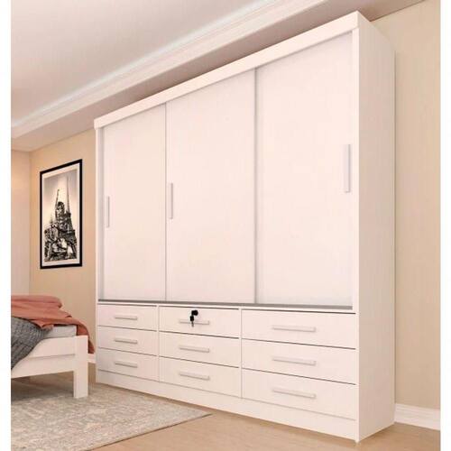 Com 3 portas de bater e 9 gavetas externas, o Guarda Roupa Chicago foi projetado com um design clássico e elegante que vai agregar valor a qualquer dormitório. Além da estética, oferece um espaço de armazenamento amplo e bem dividido para o seu consumidor. Sua estrutura em MDP e MDF com Pintura UV garantem um padrão elevado de qualidade. Aproveite!