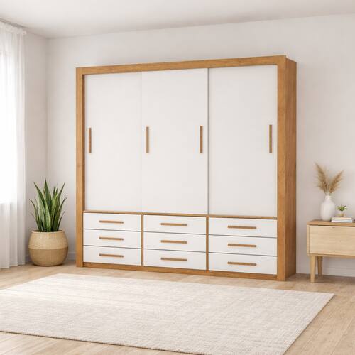 • 3 portas de correr.• 9 gavetas amplas.• 3 cabideiros internos.• Portas e gavetas com deslizamento suave.