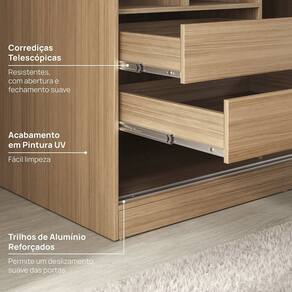 Com 3 portas de correr, espaço interno inteligente, espelho opcional e acabamentos neutros, ele se adapta a diversos