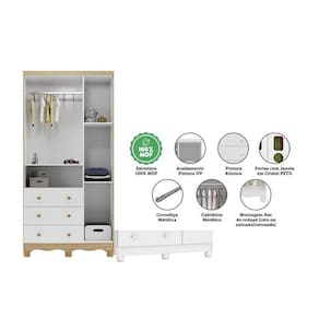 Tipo de Cabideiro - Aéreo Material dos Cabideiros - Cabideira Metálico Tipo de Porta do Guarda-Roupa - Portas de Bater Material das Portas - Portas em MDF Tipo de Dobradiças - Dobradiças Metálicas Quantidade de Portas - 3 Portas de Abrir Material das Gavetas - Gavetas em MDF Tipo de Corrediça - c/ Corrediças Telescópicas Quantidade de Gavetas - 3 Tipo dos Pés - ABS/PVC Quantidade de Pés - 6 pés Material das Prateleiras - Prateleiras em MDF Quantidade de Prateleiras - 3