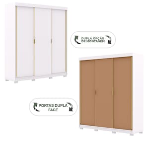 Guarda-Roupa 3 Portas Correr Dupla Face 4 Gavetas Porto Branco/Camarim 100% MDF - Vila Rica