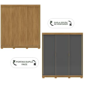 Guarda-Roupa 3 Portas Correr Dupla Face 4 Gavetas Porto Nature/Alasca 100% MDF - Vila Rica