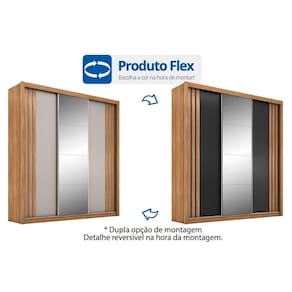 Guarda Roupa Casal 3 Portas de Correr (1 c/ Espelho) e 2 Gavetas Moema Flex Amêndola/Nude ou Preto - Demóbile