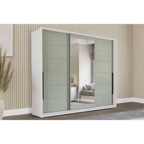 Guarda Roupa Casal 3 Portas de Correr (1 c/ espelho) e 4 Gavetas Lisboa Branco/Verde - Politorno