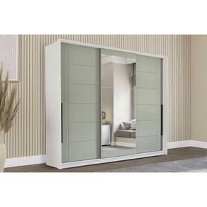 Guarda Roupa 3 Portas De Correr (1 C/ Espelho) E 4 Gavetas Lisboa Branco/verde - Politorno