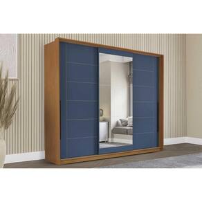 Guarda Roupa Casal 3 Portas de Correr (1 c/ espelho) e 4 Gavetas Lisboa Freijo/Azul - Politorno