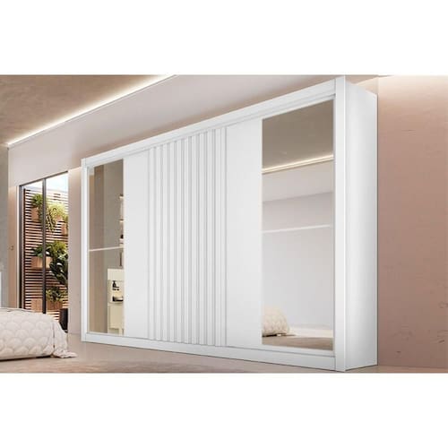 Guarda Roupa 3 Portas de Correr 1 Ripada e 6 Gavetas c/2 Espelhos Vitória Branco Acetinado - Europa