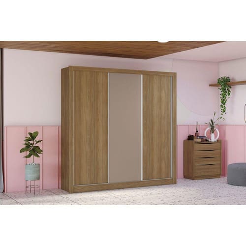 Seu quarto mais lindo, moderno e organizado com o Roupeiro M570 da Kappesberg. Com três portas de correr e medidas de 2,18m de altura, 2,23m de largura e 53cm de profundidade, todo produzido em chapa de 15mm, o que garante mais robustez, firmeza e qualidade. E suas sete camadas de pintura, tanto na parte interna quanto na externa, garantem mais durabilidade e beleza ao seu móvel. O diferencial são as portas reversíveis, podendo optar entre as cores Nogueira ou Cinza na hora de montar o seu móvel. Com uma ótima divisão de espaço entre nichos, cabideiros e gavetas com corrediças metálicas, você organiza seus itens com praticidade.