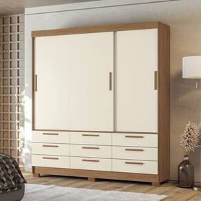 O guarda-roupa de casal Morretes 3.9 da Santos Andirá é um móvel de alta qualidade e beleza. Seu design de 3 portas de correr é uma ótima opção para espaços mais ajustados, além disso, possui 9 amplas gavetas com corrediças telescópicas para acomodar todos os pertences da família. As portas deslizam sob trilhos de alumínio e possuem freios, para ajustar onde quer que a porta pare ao abrir, e os puxadores são em MDF revestidos. Este guarda roupa já vem acompanhado pelos pés em PVC, para a maior comodidade na hora da montagem, permitindo assim, a opção do consumidor quando montar. Internamente, este móvel possui várias prateleiras e também cabideiros em alumínio. Produzido dentro das normas de sustentabilidade. Acabamento da Prateleira: Pintura UV Escala de Brilho da Prateleira: Fosco Possui Cabideiros: Sim Acabamento da Gaveta: Verniz Escala de Brilho da Gaveta: Fosco Material do Puxador da Gaveta: MDF Possui Organizador de Gaveta: Não Acabamento da Porta: Verniz Escala de Brilho da Porta: Fosco Material do Puxador da Porta: MDF Acabamento dos Pés: Poliéster Altura dos Pés: 5 cm Altura Máxima dos Pés: 5.0000 Ambiente Principal: Quarto codigo_ean: 7900288096425 Complexidade da Montagem: Média: pode ser montado por mais de uma pessoa e/ou necessite de maior conhecimento para montagem Cor: Jatobá/Areia Cor do Produto: Jatobá/Areia Cor do Puxador: Marrom Cor Interna: Jatobá Escala de Brilho: Fosco Espessura da Estrutura (mm): 12 mm Espessura das Portas (mm): 12 mm Espessura das Prateleiras (mm): 12 mm Espessura do Fundo (mm): 2,5 mm Espessura do Fundo das Gavetas (mm): 2,5 mm Gaveta com Chave: Não Guarda-Roupa Suporta Até (kg): 93 kg Itens Inclusos: 1 Guarda-Roupa, Kit de Ferragens e Manual de Montagem Linha ou Coleção: Linha Paraná Manual de Montagem e Instalação: https://product-hub-prd.madeiramadeira.com.br/982374/documents/053686c2-160b-455b-a73e-b784c405153886961742587505982374150766.pdf Marca: Santos Andirá Material da Gaveta: MDP Material da Porta: MDP Material da Prateleira: MDP Material dos Pés: PVC Material Principal: MDP modular: Não Necessita Montagem: Sim Nicho com Cabideiro: Não Origem do Produto: Nacional Peso: 114,9 kg Peso Máximo por Gaveta: 3 kg Peso Máximo por Prateleira: 8 kg Porta Janelada: Não Possui Espelho: Não Possui Pés: 06 Possui Portas: Sim Possui Prateleiras: Sim Produto Montado: Sim Quantidade de Cabideiros: 02 Cabideiros Quantidade de Gavetas: 09 Gavetas Quantidade de Prateleiras: 04 Prateleiras Recomendações de Uso, Manutenção e Limpeza: Durabilidade: Permite ser desmontado e montado até cinco vezes. 5 – Manutenção: Não limpar com álcool ou qualquer outro produto químico, utilize somente pano seco ou levemente umedecido. Sapatas Niveladoras: Não Sistema de Montagem: Parafusos, Cavilha, Minifix Tipo de Corrediça da Gaveta: Metálica Telescópica Tipo de Dobradiça/Corrediça da Porta: Alumínio Tipo de Gaveta: Externa Tipo de Guarda-Roupa: Solteiro Tipo de Puxador da Gaveta: Externo Tipo de Puxador da Porta: Externo