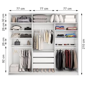 O quarto é um ambiente íntimo e único, pensando nisso a RR fez o Roupeiro Belluno, produzido em 15mm e revestido com melamina de baixa pressão e fitas de borda em PVC, oferecendo mais resistência e durabilidade. Com 3 portas de correr, 3 gavetas com corrediças telescópicas, 3 cabideiros e 9 prateleiras. Produto de alta qualidade e resistente. Padrão marcenaria. Acabamento da Prateleira: BP Melamínico Escala de Brilho da Prateleira: Fosco Possui Cabideiros: 03 Acabamento da Gaveta: BP Melamínico Escala de Brilho da Gaveta: Fosco Material do Puxador da Gaveta: MDP Possui Organizador de Gaveta: Não Acabamento da Porta: BP Melamínico Escala de Brilho da Porta: Fosco Material do Puxador da Porta: Alumínio Acabamento dos Pés: BP Melamínico Altura do Espelho: 200 cm Altura dos Pés: 4 cm Ambiente Principal: Quarto Complexidade da Montagem: Alta: deve ser montado por um montador especializado Cor: Branco Cor do Produto: Branco Cor Interna: Branco Escala de Brilho: Fosco Espessura do Espelho: 3 mm Formato do Espelho: Retangular Gaveta com Chave: Não Itens Inclusos: Guarda Roupa, kit ferragens e manual de montagem Largura do Espelho: 73 cm Linha ou Coleção: Belluno Manual de Montagem e Instalação: https://cdn2.madeiramadeira.com.br/atributo/tom-da-cor/860319-manual-de-montagem-belluno-3p.pdf Material da Gaveta: MDP Material da Porta: MDP Material da Prateleira: MDP Material dos Pés: MDP Material Principal: MDP Necessita Montagem: Sim Origem do Produto: Nacional Peso: 140 kg Peso Máximo por Gaveta: 30 kg Peso Máximo por Prateleira: 15 kg Possui Calceiros: Não Possui Espaço para Vestidos Longos: Sim Possui Espelho: Sim Possui Espelho Interno: Não Possui iluminação: Não Possui Painel de TV: Não Possui Pés: Rodapé Possui Portas: 03 Possui Prateleiras: 06 Quantidade de Espelho: 03 Espelhos com Tamanhos Iguais Recomendações de Uso, Manutenção e Limpeza: Pano úmido Sapatas Niveladoras: Não Sistema de Montagem: Parafusos e Cavilhas Tipo de Corrediça da Gaveta: Metálica Telescópica Tipo de Dobradiça/Corrediça da Porta: Alumínio Tipo de Fixação do Espelho: Silicone Tipo de Gaveta: Interna Tipo de Guarda-Roupa: Casal Tipo de Puxador da Gaveta: Não Possui Tipo de Puxador da Porta: Embutido Marca: RR Móveis