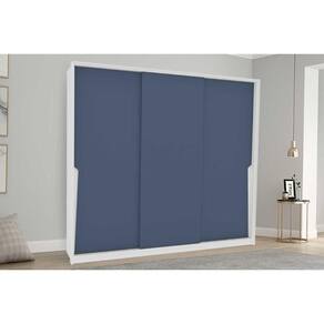 Guarda Roupa Casal 3 Portas de Correr e 4 Gavetas Porto Branco/Azul - Politorno