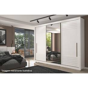 Guarda Roupa Casal 3 Portas de Correr e 6 Gavetas c/ Espelho Vitória Branco - Panan