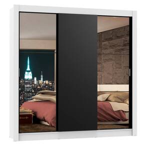 - Três (3) portas de correr, sendo duas (2) com espelhos e puxadores em PVC e uma (1) de madeira