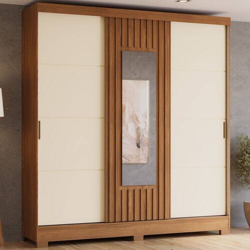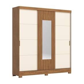 O Roupeiro Spazio é a solução perfeita para manter seu ambiente organizado. Com 03 Portas Deslizantes e 02 Gavetas, além de um amplo espaço interno, ele conta com 2 gavetas com corrediças metálicas, porta com apliques ripados e uma porta com espelho de 1250cm x 350cm. Seus puxadores na cor bronze, pés em ABS e cabideiro e calceiro de madeira revestida garantem durabilidade e resistência. Este móvel é o toque que faltava para compor o seu quarto com praticidade e estilo. Acabamento da Prateleira: Pintura UV Escala de Brilho da Prateleira: Fosco Possui Cabideiros: Sim Acabamento da Gaveta: Pintura UV Escala de Brilho da Gaveta: Fosco Possui Organizador de Gaveta: Não Acabamento da Porta: Pintura UV Escala de Brilho da Porta: Fosco Material do Puxador da Porta: Alumínio Altura do Espelho: 125 cm Altura dos Pés: 5 cm Altura Máxima dos Pés: 5.0000 Ambiente Principal: Quarto codigo_ean: 7900288112729 Complexidade da Montagem: Alta: deve ser montado por um montador especializado Cor: Marrom/Off White Cor do Produto: Marrom/Off White Cor Interna: Trama Escala de Brilho: Fosco Espessura da Estrutura (mm): 15 mm Espessura das Portas (mm): 15 mm Espessura das Prateleiras (mm): 15 mm Espessura do Espelho: 3 mm Espessura do Fundo (mm): 3 mm Espessura do Fundo das Gavetas (mm): 3 mm Formato do Espelho: Retangular Guarda-Roupa Suporta Até (kg): 90 kg Informações Complementares: • Cabideiro e calceiro de madeira revestidos • 02 gavetas com corrediças metálicas • 03 portas deslizantes • Porta com apliques ripados • Porta com espelho 1250x350 mm • Puxadores na cor bronze Itens Inclusos: 1 Guarda Roupa, Instrução de Montagem Largura do Espelho: 35 cm Linha ou Coleção: B376 Manual de Montagem e Instalação: https://product-hub-prd.madeiramadeira.com.br/981542/documents/59dfb3ea-2f4f-458c-b9ed-7e9b886e30c32747014326617422313685954.pdf Marca: Espresso Móveis Material da Gaveta: MDF/MDP Material da Porta: MDP Material da Prateleira: MDP Material dos Pés: ABS Material Principal: MDP modular: Não Montagem Flex: Não Necessita Montagem: Sim Origem do Produto: Nacional Peso: 105 kg Peso Máximo por Gaveta: 3 kg Peso Máximo por Prateleira: 8 kg Possui Calceiros: 01 Possui Espelho: Sim Possui Pés: 06 Possui Portas: Sim Possui Prateleiras: Sim Produto Montado: Sim Quantidade de Cabideiros: 02 Cabideiros Quantidade de Espelho: 01 Quantidade de Gavetas: 02 Gavetas Quantidade de Portas com Espelhos: 1 Porta com Espelho Quantidade de Prateleiras: 04 Prateleiras Recomendações de Uso, Manutenção e Limpeza: Para limpeza de seu móvel, use uma flanela limpa e seca. Não utilize produtos químicos que possam danificar o produto. Sapatas Niveladoras: Não Sistema de Montagem: Parafusos e Cavilhas Suporta Até (kg): 90 kg Tipo de Corrediça da Gaveta: Metálica Simples Tipo de Dobradiça/Corrediça da Porta: Metálica Tipo de Fixação do Espelho: Parafusos Tipo de Gaveta: Interna Tipo de Guarda-Roupa: Solteiro Tipo de Puxador da Gaveta: Não Possui Tipo de Puxador da Porta: Externo