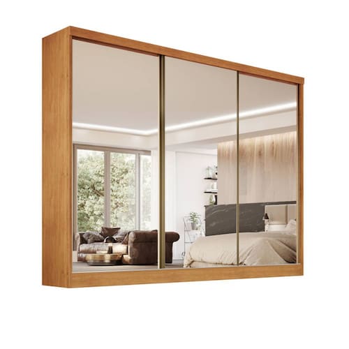 Guarda-roupa 3 portas espelhadas MDF 6 gavetas 2,70m - Bergamo - Bianchi MóveisEste Guarda-roupa com espelhos é pura ofisticação e elegância que o seu ambiente merece! Tudo o que você precisa organizado. São complementos coringas para diversos ambientes da casa, facilitando seu dia a dia. Fabricado em MDF. Estrutura em MDF de 15mm, 6 gavetas com corrediças telescópicas, amplo espaço interno. 8 prateleiras internas, 3 cabideiros em alumínio, espaço para roupas longas, puxadores em alumínio na cor bronze, laterais do roupeiro com encabeçamento de MDF de 25mm. Película de segurança no espelho.Este é o produto que faltava para compor ainda mais seu quarto e deixá-lo muito mais charmoso!Faz parte deste anúncio:1 Guarda roupa casal 3 portas espelhadas Bergamo - Bianchi MóveisParticularidade do Guarda roupa casal:Características do Guarda-roupa casal:-Fabricado em MDF-Estrutura em MDF de 15mm-6 gavetas com corrediças telescópicas-Amplo espaço interno-8 prateleiras internas-3 cabideiros em alumínio-Espaço para roupas longas-Puxadores em alumínio na cor bronze-Laterais do roupeiro com encabeçamento de MDF de 25mm-Película de segurança no espelho-Acabamento semi brilhoDimensões:Altura: 2,30 MetrosLargura: 2,70 MetrosProfundidade: 60 CentímetrosInformações Importantes:.-O envio desse produto é feito através de transportadora.-Produtos podem apresentar diferenças de tonalidades entre a foto na tela e o produto real, devido a calibração de cor de tela.-Limpar com flanela ou pano macio. Não utilizar álcool. Não utilizar produtos abrasivos ou corrosivos.-Nós prezamos pela qualidade da entrega em primeiro lugar, trabalhamos com transportadoras altamente selecionadas e os melhores materiais de embalagem.-A montagem é de total reponsabilidade do comprador. Antes de comprar, verifique o espaço disponível para a montagem.-Certifique-se de que o produto caiba em elevadores e vãos de escadas, não fazemos içamentos. Quaisquer despesas deste tipo ficam a cargo do cliente-Garantia de 3 meses contra defeitos de fabricação.