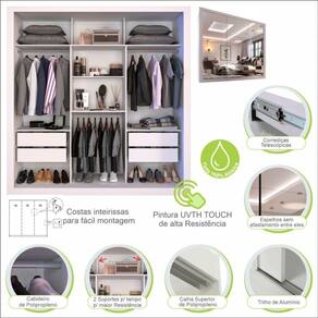 Guarda Roupa Casal 3 Portas Espelhado 4 Gavetas Panamá Sallêto Móveis Branco