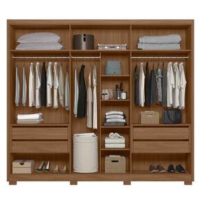 Feito em MDP, com quatro gavetas com corrediças telescópicas garantindo um deslizamento suave e silencisoso, possui sete prateleiras amplas e espaçosas podem ser utilizadas para guardar edredons, cobertores, caixas e sapatos