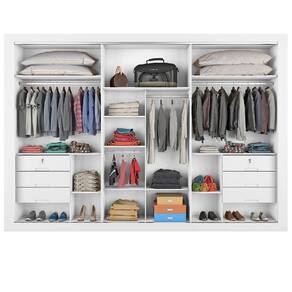 O Guarda Roupa York - Móveis Europa é a escolha ideal para quem procura um produto espaçoso e elegante, que une funcionalidade e estilo. Fabricado em 100% MDF (Madeira de Reflorestamento) e com acabamento em verniz UV e escala de brilho semi-brilho, este roupeiro combina robustez e estilo. Seu design sofisticado, com detalhes em relevo nas portas, inclui um compartimento dedicado para malas e roupas de cama, além de prateleiras removíveis que oferecem uma organização excepcional e praticidade. Com 6 gavetas amplas equipadas com corrediças telescópicas, duas delas possuem chave para garantir segurança adicional aos seus itens mais preciosos. O móvel conta com trilhos inferiores e superiores em alumínio, roldanas ajustáveis e costas parafusadas, proporcionando maior resistência e durabilidade. Além disso, inclui compartimentos para calçados e divisões internas "ELA" e "ELE" para uma organização ainda mais eficiente.