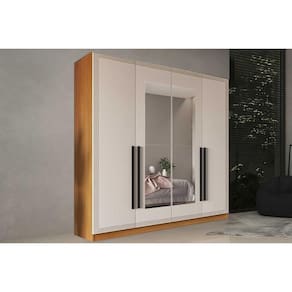 Material do Calceiro - Calceiro Metálico Material dos Cabideiros - Cabideira Metálico Tipo de Porta do Guarda-Roupa - Portas de Bater Material das Portas - Portas em MDF/MDP Diferenciais das Portas - Porta c/ Espelho Quantidade de Portas - 4 Portas de Abrir Quantidade de Portas com Espelho - 2 Portas com Espelho Tipo de Espelho - Espelho Externo Quantidade de Espelhos - 2 Espelhos Material das Gavetas - Gavetas em MDP Tipo de Corrediça - c/ Corrediças Telescópicas Quantidade de Gavetas - 4 Gavetas Tipo dos Pés - ABS/PVC Quantidade de Prateleiras - 6