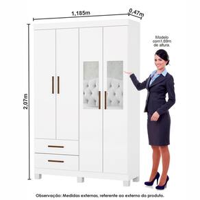 O Guarda-Roupa Genova 4 Portas 2 Gavetas Com Espelho e Pés, é ideal para quem procura um produto compacto e funcional. Possui 2,07m de altura, 1,185m de largura e 0,47m de profundidade combinado com 2 gavetas, 2 prateleiras e um grande cabideiro, deixando o produto com uma ótima divisão interna. O maleiro é ideal para guardar malas, cobertores, edredons. O cabideiro além de resistente, é ideal para pendurar pares de blusas, camisas acessórios. As prateleiras são perfeitas para colocar roupas como blusas, shorts, regatas, kits de maquiagem, toalhas, caixinhas com acessórios e bolsas menores. As gavetas fixadas sobre corrediças metálicas, são ideais para guardas blusas dobradas, shorts, malhas e roupas íntimas. Estrutura do produto em MDP.