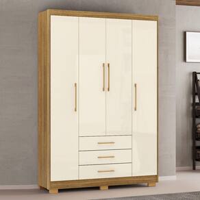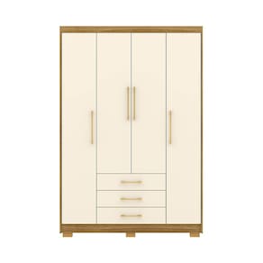 Guarda-Roupa 4 Portas 3 Gavetas Espanha Nature/Champanhe - Vila Rica