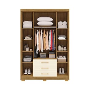 Conteúdo da Embalagem: 1 Guarda-Roupa, manual de montagem e Kit Ferragem