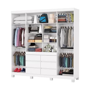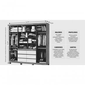 Conta com excelente , incluindo 6 gavetas espaçosas, ideais para armazenar roupas dobradas, peças íntimas e acessórios. O espaço para cabides permite acomodar diversas peças penduradas, mantendo tudo organizado e bem conservado.