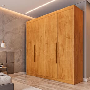 OGuarda Roupa 4 Portas Aurora - Móveis Europaé a escolha perfeita para quem deseja um ambiente organizado e repleto de estilo. Com um design sofisticado e funcional, suas costas parafusadas proporcionam maior estabilidade e resistência. Seus puxadores externos de madeira, grandes e sofisticados, trazem um toque especial ao móvel. Conta com Compartimentos estratégicos para malas e roupas de cama, garantindo que cada canto do seu guarda roupa seja aproveitado ao máximo, além de sapateira com corrediças telescópicas ideal para organizar e manter seus calçados sempre à mão.