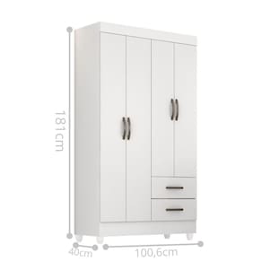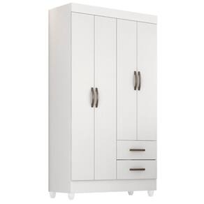 Feito em MDP. Contém 4 portas, 1 cabideiro em alumínio e 2 gavetas com corrediças metálicas facilitando a abertura e deslizamento.