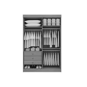 Portas e Molduras de MDF; Corrediças telescópicas 40 cm; Produndidades da Gavetas 40cm; Suporte Cabides metálico; Puxadores de Madeiras; Pé e espelho opcional;