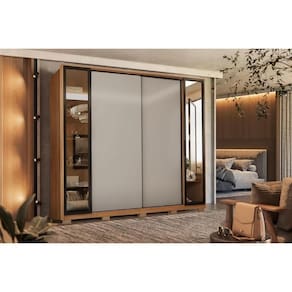 Guarda Roupa 4 Portas De Correr E 4 Gavetas C/ 2 Vidros Reflecta E Pés Laredo Amêndola/amêndola Ou Nude - Demóbile