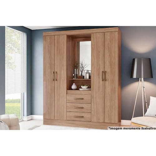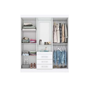 Tipo de Cabideiro - Aéreo Material dos Cabideiros - Cabideira Metálico Diferenciais das Portas - Porta c/ Espelho Tipo de Corrediça - c/ Corrediças Metálicas Quantidade de Gavetas - 3
