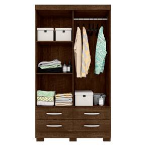 Feito em MDP 15mm.Possui 4 gavetas com corrediças telescópicas, 4 Portas, 2 prateleiras e 1 cabideiro.