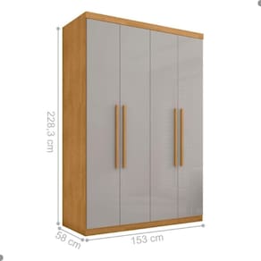 Feito em MDF 4 gavetas com corrediças telescópicas, 4 Portas , 6 prateleiras e 3 cabideiro.