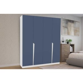 Guarda Roupa Casal 4 Portas e 4 Gavetas Porto Branco/Azul - Politorno