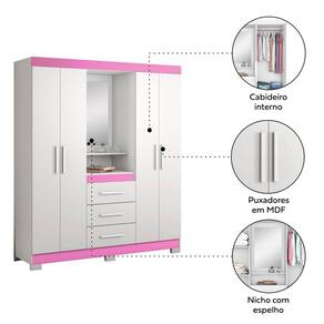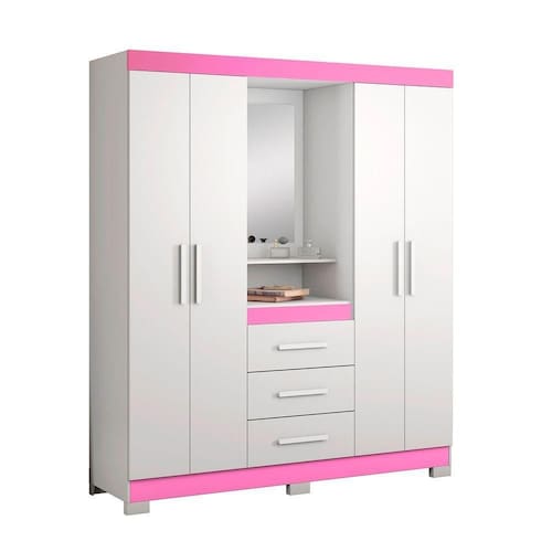 O Guarda-Roupa Huntano - MoveisAqui, tráz o famoso modelo capelinha com espelho centralizado que é um dos queridinhos dos brasileiros. Super funcional e perfeito para a organização dos itens do seu dormitório, possui quatro portas e três gavetas que contribuirão para deixar seu quarto mais organizado.