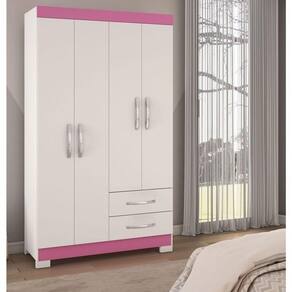 Guarda-roupa 4 Portas Malto Rosa - Moveisaqui O Guarda-Roupa Malto - MoveisAqui, é perfeito para deixar seu quarto mais organizado. Com um espaço amplo, permite a organização das suas roupas e acessórios do dormitório. Conta com cabideiro que permite uma melhor disposição das ões do Produto montado:Altura: 188 cmLargura: 108 cmProfundidade: 45 cmObservações:- 4 portas;- 2 gavetas;- Gavetas com corrediças metálicas;- Cabideiro;- Produto , algumas peças podem ser montada do lado rosa/branco;- Pintura Ultravioleta com acabamento brilho.