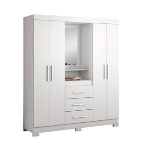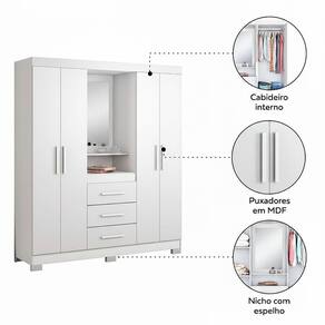 Guarda-roupa 4 Portas Nt 5015 Branco - Notável O Guarda-Roupa NT 5015 - Notável, tráz o famoso modelo capelinha com espelho centralizado que é um dos queridinhos dos brasileiros. Super funcional e perfeito para a organização dos itens do seu dormitório, possui quatro portas e três gavetas que contribuirão para deixar seu quarto mais ões do Produto montado:Altura: 188 cmLargura: 161 cmProfundidade: 45 cmObservações:- Prateleiras internas;- 4 portas;- 3 gavetas;- Produto , pode algumas peças podem ser montada do lado rosa/branco;- Gavetas com corrediças metálicas;- Espelho;- Cabideiro;- Pintura Ultravioleta com acabamento brilho.