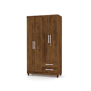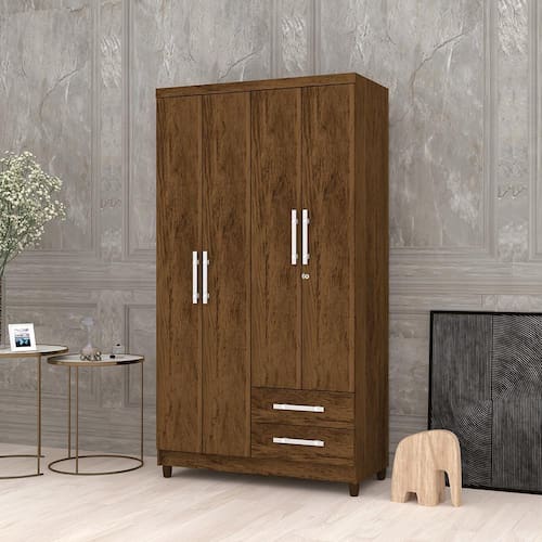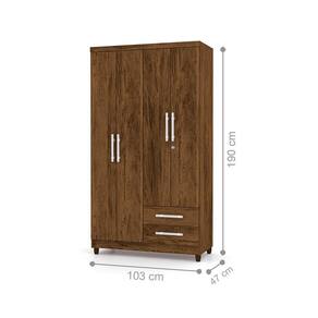 Produzido em MDP, 4 Portas, 2 Gavetas internas com corrediças metálicas., Cabideiro em madeira, Pés de madeira opcional na montagem, Puxadores metalizados com design moderno
